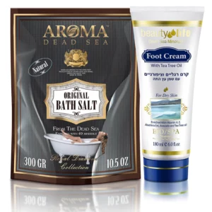 Offrez à vos pieds un rituel bien-être alliant les bienfaits purifiants du sel de la Mer Morte et une crème hydratante au choix. Idéal pour apaiser, revitaliser et nourrir vos pieds en profondeur.